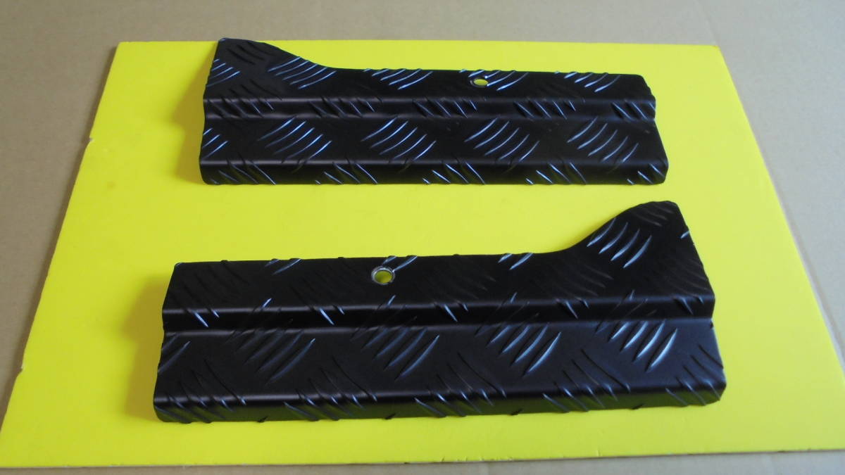 > ハイエースバン 200系 リアバンパーカバー左右セット ナロー用 アルミ製縞板 最終アルマイトブラックカラー 1~8型用
