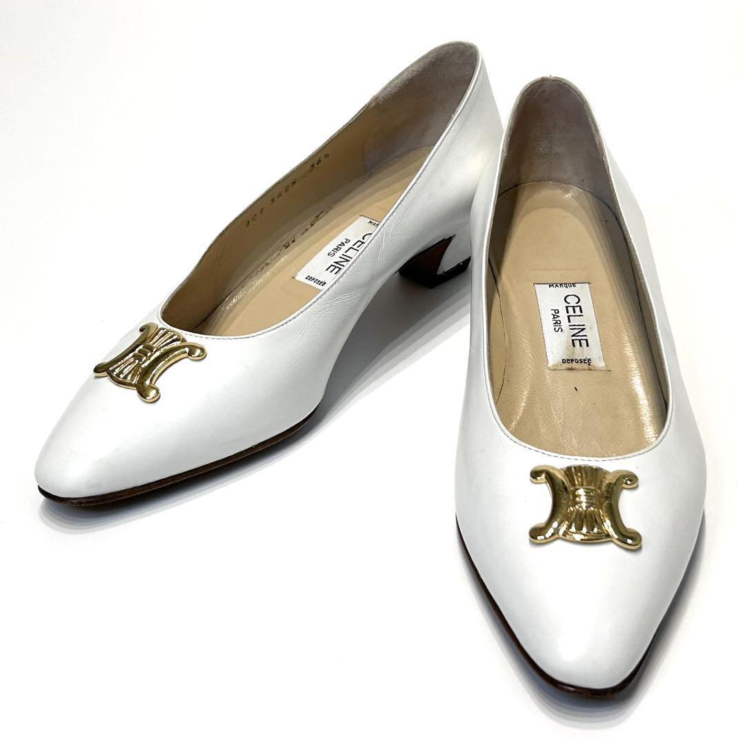 - 美品 CELINE セリーヌ パンプス トリオンフ金具 23.5cm 白 ホワイト レザー 36.5 レディース 靴 シューズ