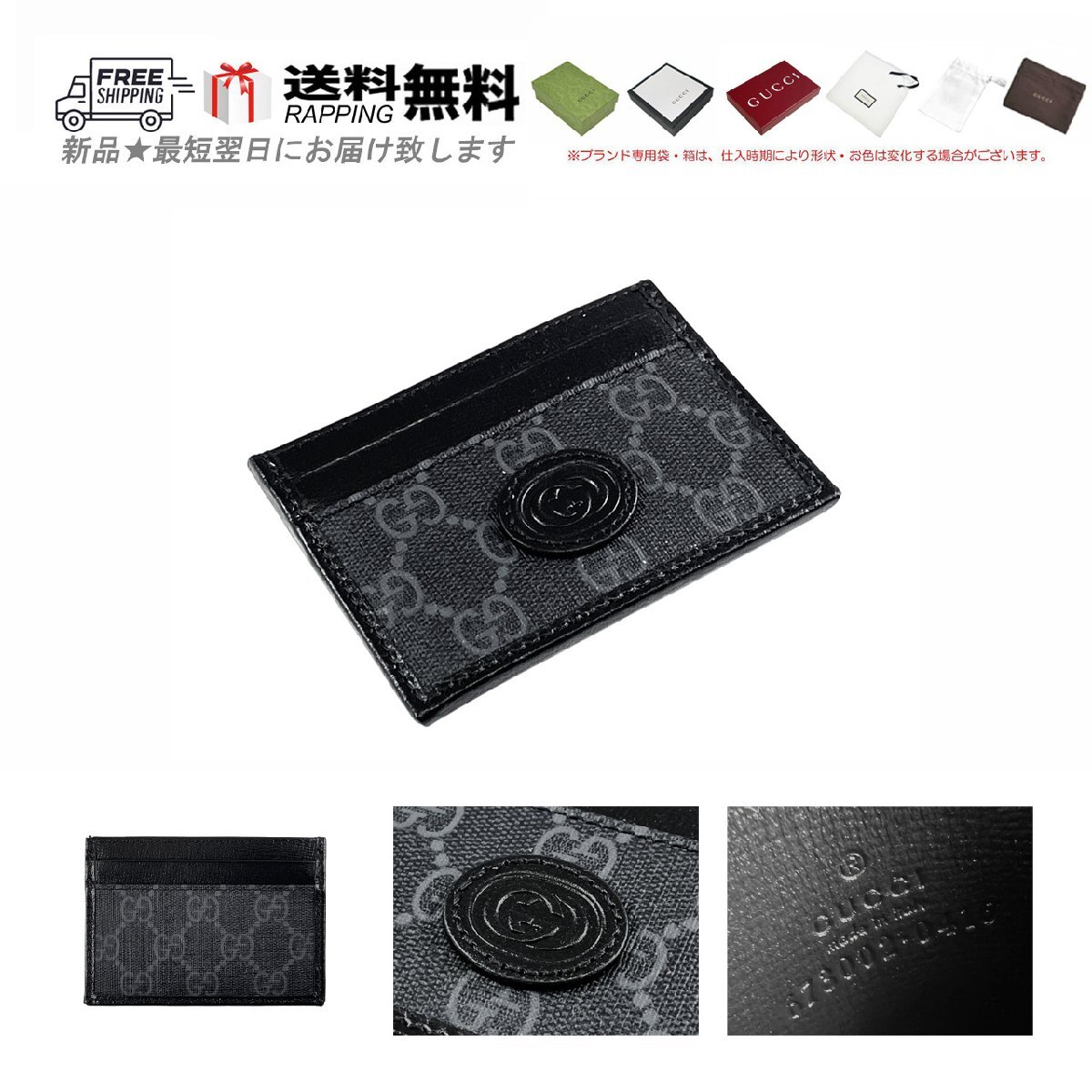 > L815.. GUCCI グッチ 財布 ウォレット カードケース インターロッキング G キャンバス ロゴ イタリア製 ★ ブラック