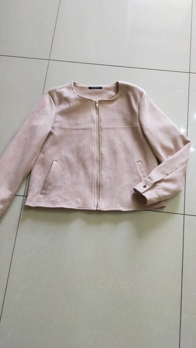 - 即決 美品 イング ノーカラージャケット ジャケット ブルゾン ジップアップ ノーカラー М ピンクベージュ INGNI