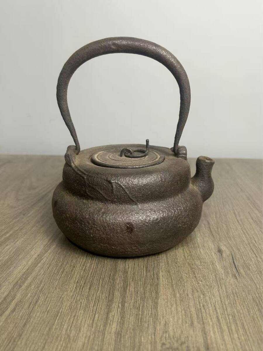 - 龍文堂鉄瓶 鉄びん 急須 茶道具 老鉄瓶 鉄器 提梁壺 茶道具 1100ml 品12-1