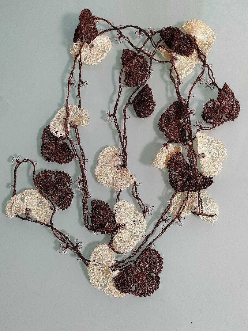 - r1 オヤ刺繍 ラリエット ネックレス ブラウン ホワイト お花刺繍 トルコ