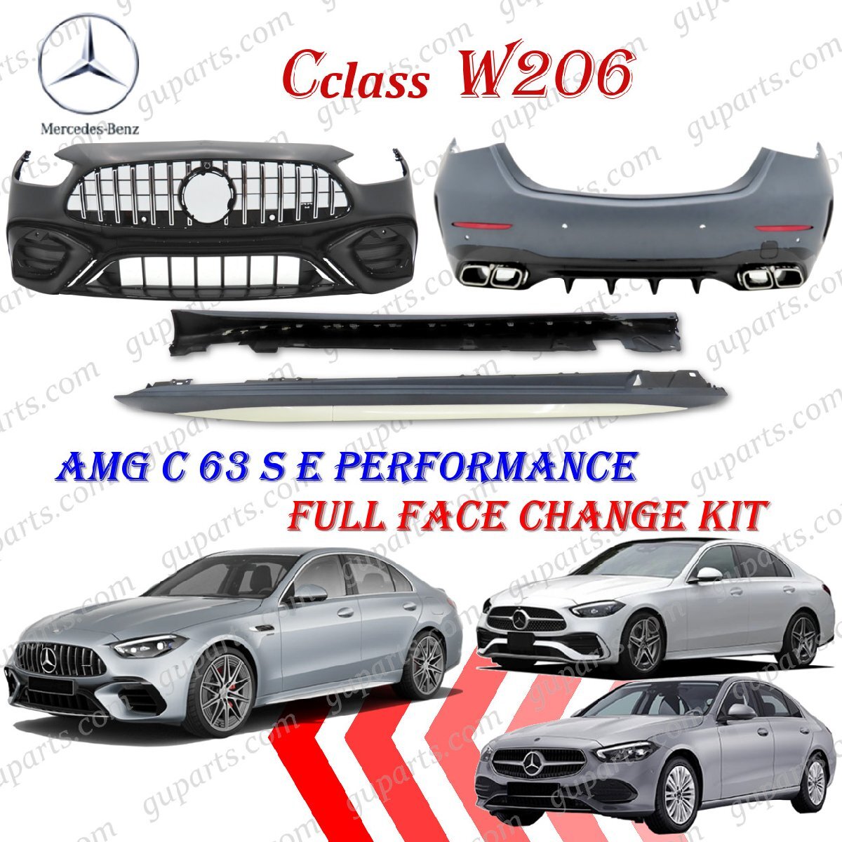 > ベンツ C W206 2021~ C180 C200 C220d C350e C43 フェイスチェンジ C63 AMG LOOK フロントバンパー リアバンパー サイドスカート セット