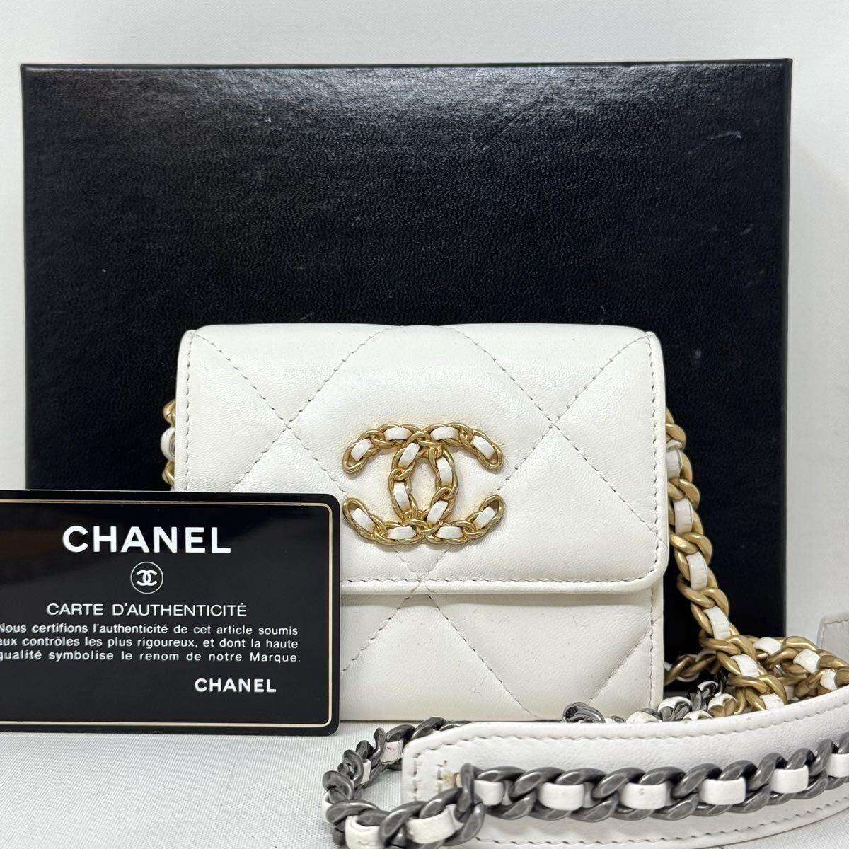 - CHANEL マトラッセ 19 ミニ ショルダーバッグ ホワイト コインケース チェーンショルダー ココマーク ゴールド シルバー シールカードあり