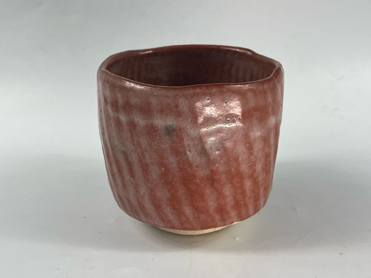 - 赤楽 筒茶碗 在銘 楽 茶道具【博圓】高9.3cm