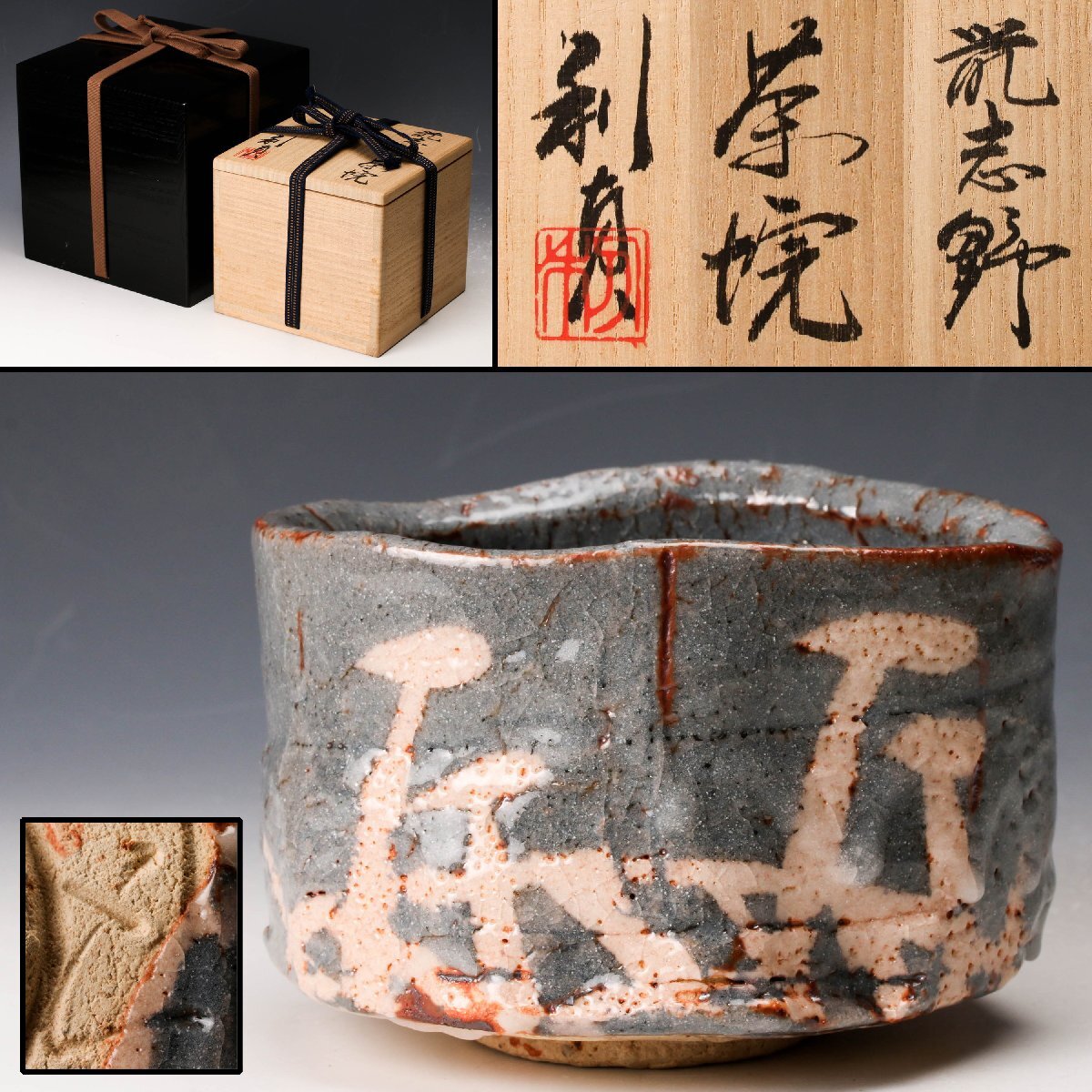 【佳香】若尾利貞 鼡志野茶碗 共箱 二重箱 栞 茶道具 本物保証