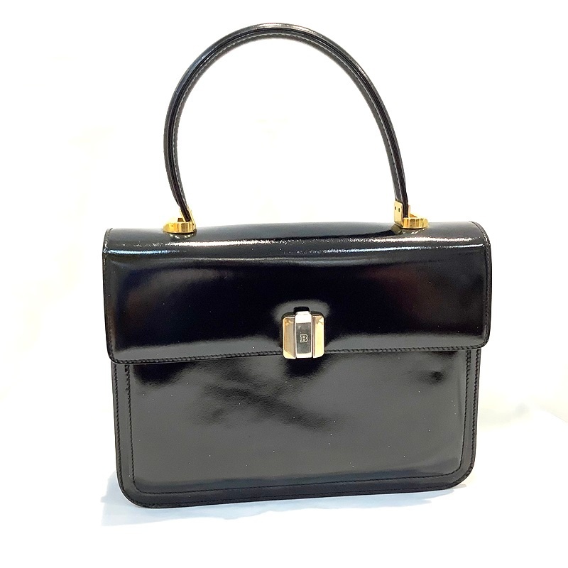 - バリー BALLY エナメルレザー ハンドバッグ ブラック フォーマルバッグ 【中古】KB-9775