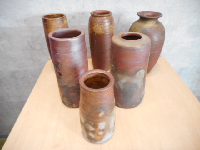 - ◇陶器 花器 焼物 おまとめ6点 作家印あり 丹波焼 備前焼 花瓶 花入れ 華道具 茶道具 インテリア 置物 保管品 箱無し