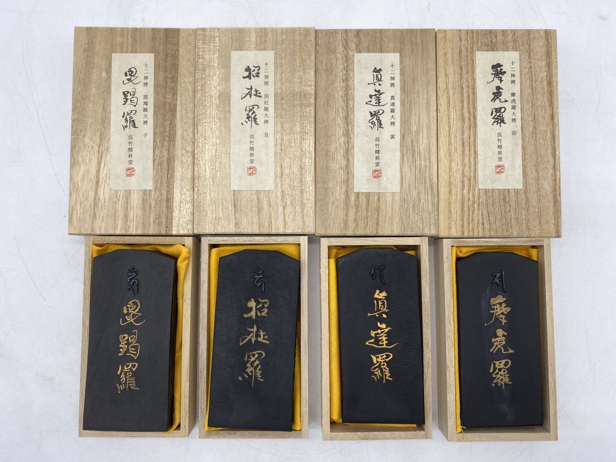 - 【未使用品】四点まとめ 呉竹精昇堂『十二神将』 毘羯羅大將 子/招杜羅大將 丑/真達羅大將 里/摩虎羅大將 卯 古墨 書道墨(13398)