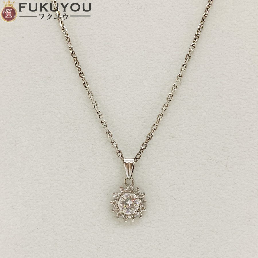 > Pt850/900 プラチナネックレス ダイヤモンドトップ メレダイヤ 0.61ct/0.45ct 6.6g 42cm