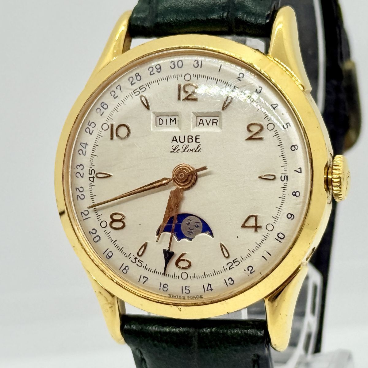 > T7775 極みの逸品 ヴィンテージ AUBE Le Locle オーブ ル ロックル トリプルカレンダー ムーンフェイズ 時計 メンズ SWISS 蒐集
