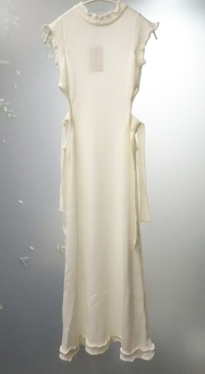 - 匿名/ゆうパケ送込 【未使用 タグ付き】 ホワイト系 ニットワンピース ウエストリボン