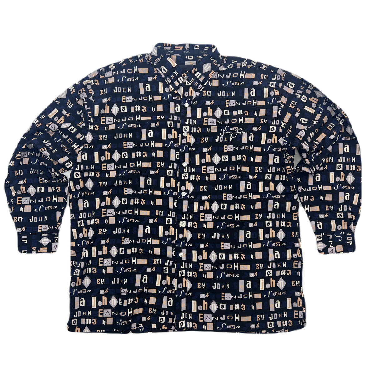 - ショーンジョン 長袖シャツ ロゴ 総柄 涼やかポリエステル XXL ビッグシルエット 大きめサイズ SEAN JOHN ●AL316