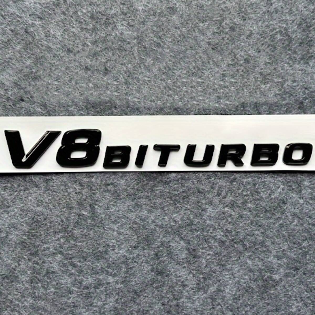 > エンブレム V8 BITURBO 車用 ロゴ 20cm ブラック 黒 プラスチック 防水 プレート シール バイク 3D 立体 おしゃれ デコ ステッカー t8675