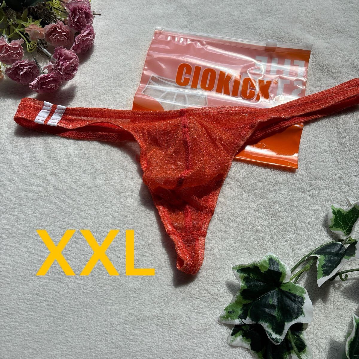 - 新品 メンズ XXLサイズ CIOKICX オレンジ ラメ レース Tバック ショーツ パンツ 兄貴 ハイレグビキニ
