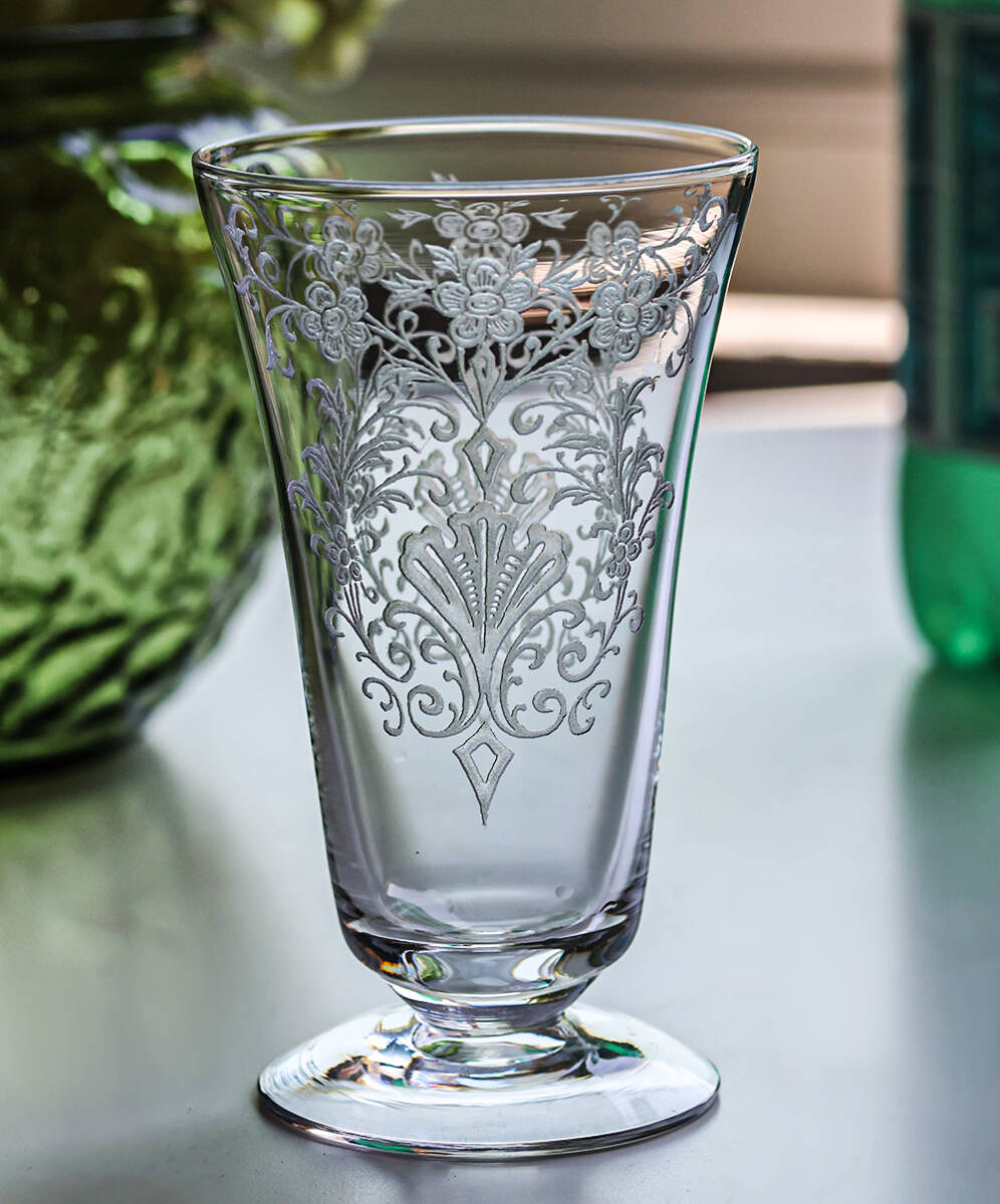- ティフィン クリスタル フローレンス フラワー エッチング タンブラー ジュース カクテルグラス 酒 ビンテージ バーグラス アンティーク