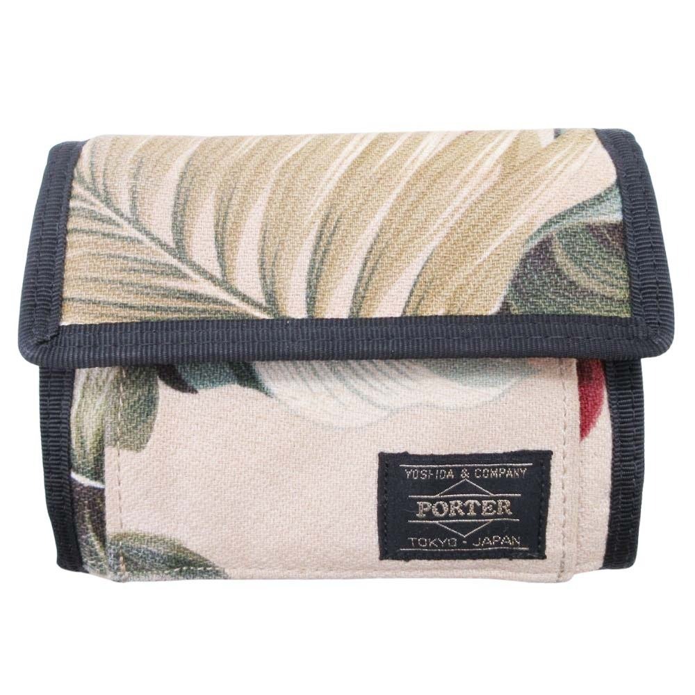 - 良品 PORTER × NEXUSVII ポーター ネクサスセブン ボタニカル リーフ柄 三つ折り財布 コンパクトウォレット ベージュ