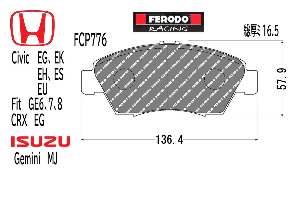 - HONDA Civic、Fit、CRX ほか FERODO スポーツ パッド フロント特価