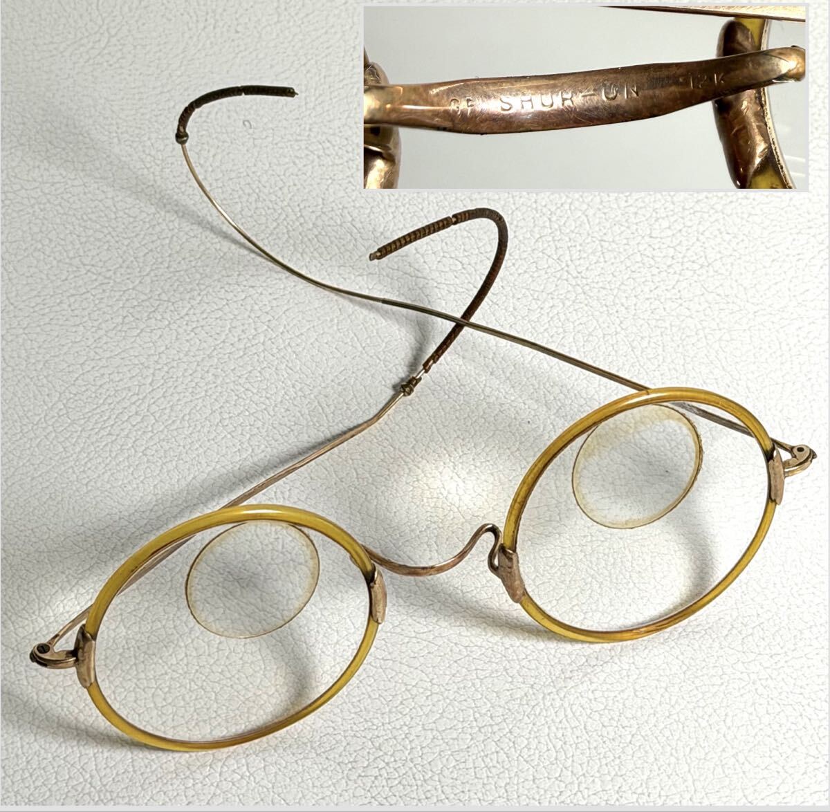 - 12K GF 眼鏡 ゴールド めがね メガネ 金メッキ 丸メガネ フレーム