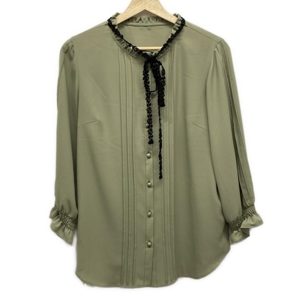 - ローズティアラ Rose Tiara 長袖シャツブラウス サイズ42 L - カーキ×黒 レディース フリル 美品 トップス