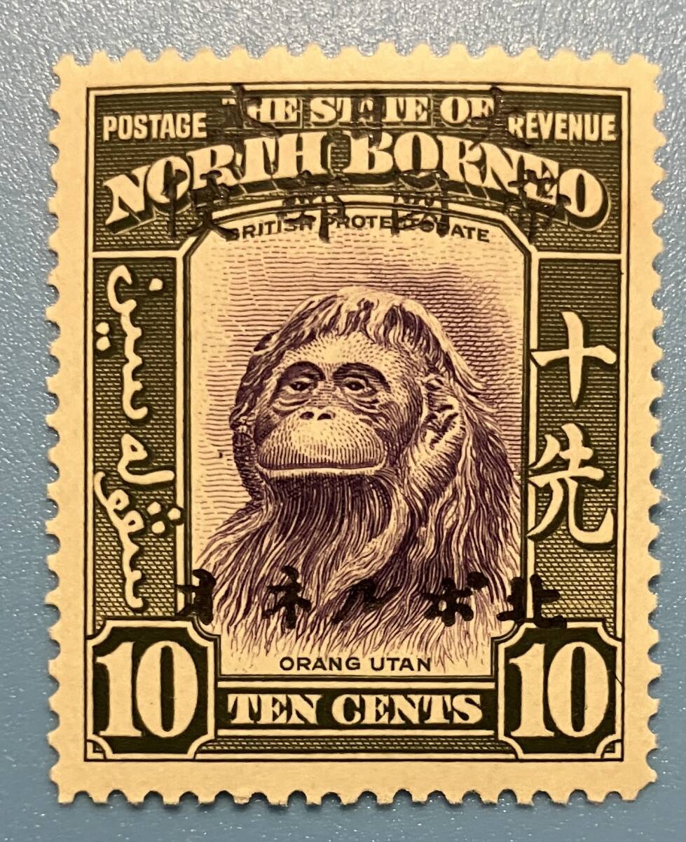 - 南方占領地切手 旧、北ボルネオ オランウータン 大日本帝国郵便 加刷 10セント 10C 未使用
