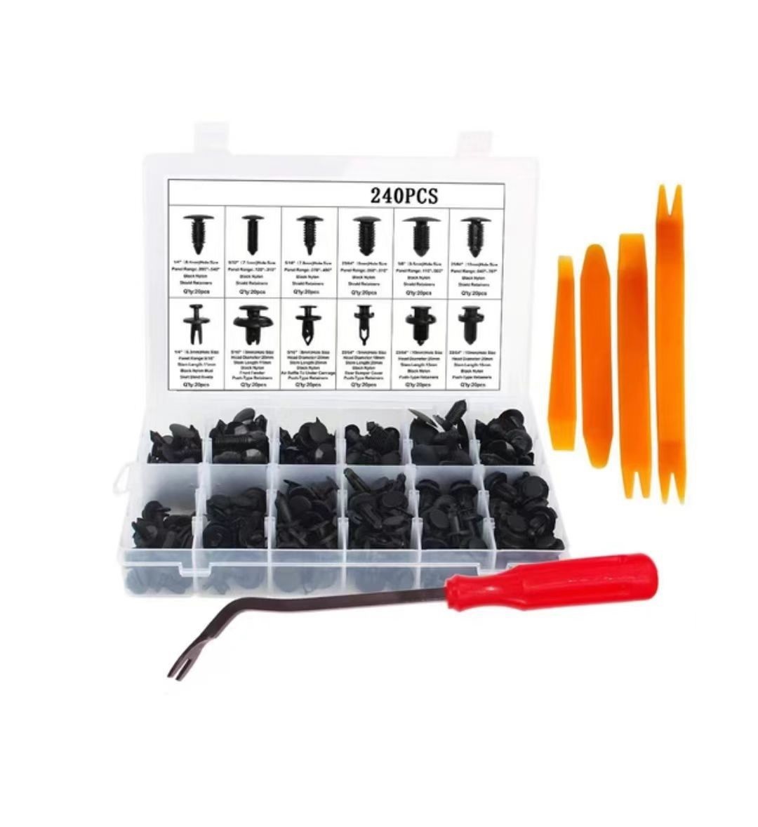> 車 内装 240個 12種類 車体プッシュ ピン 内張り剥がし 工具 リベット クリップキット 自動車フェンダー 汎用 el-pin244