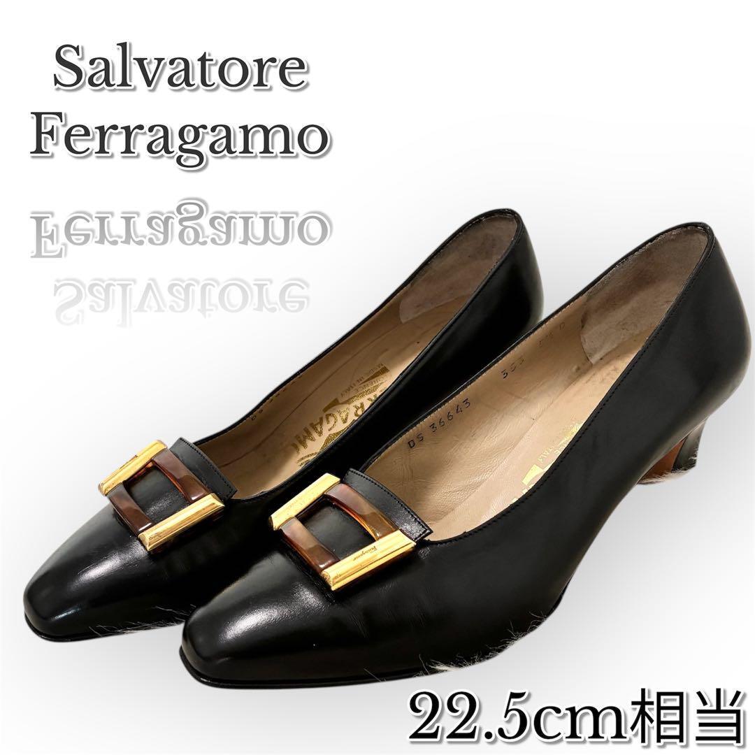 > FERRAGAMO フェラガモ パンプス ハイヒール 22.5cm 黒 靴 4669 00530101