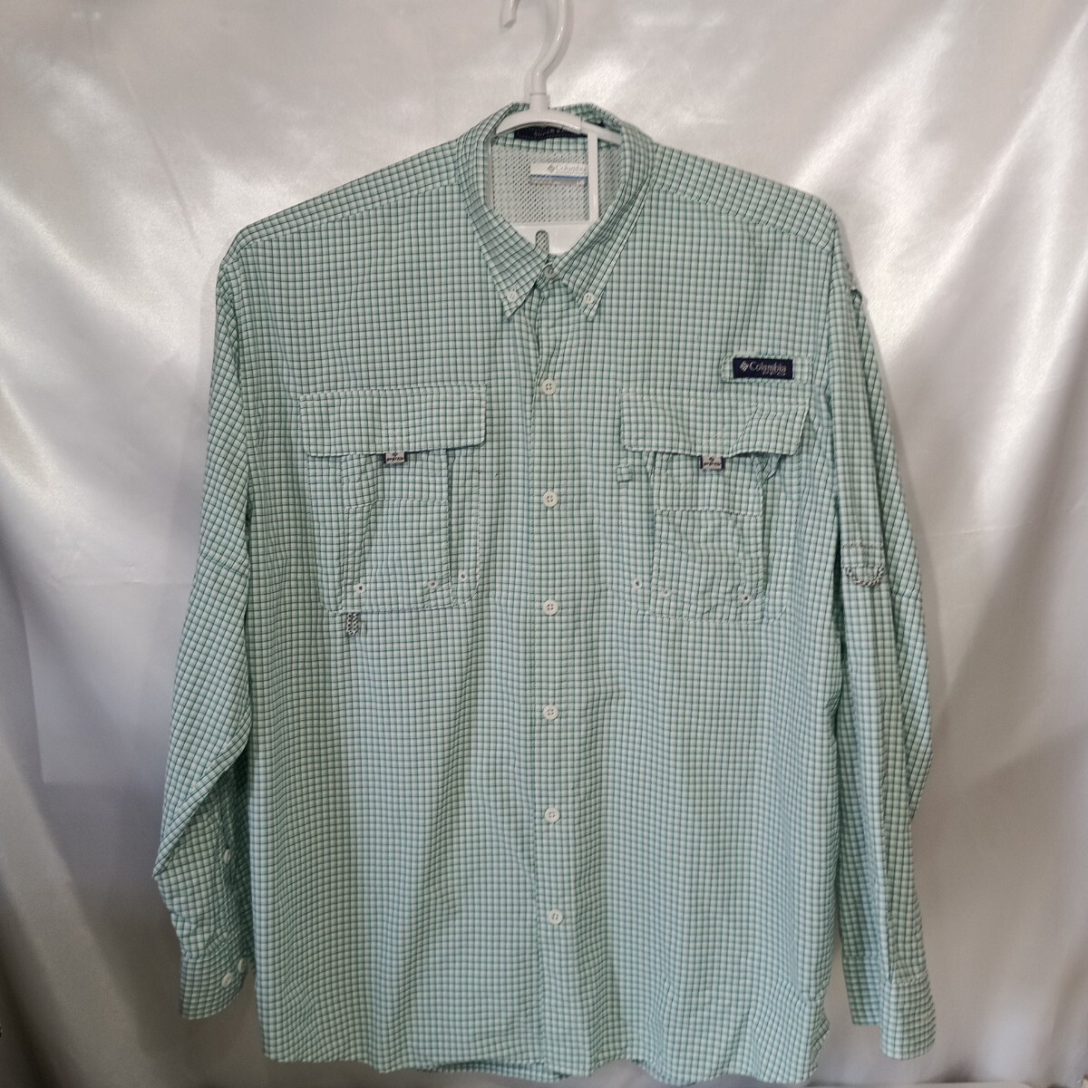 - zaa-143♪USユーズド★コロンビアColumbia(スーパーバハマ)長袖マウンテンシャツ★チェックボタンダウン★グリーンUS-L(日本XLサイズ)