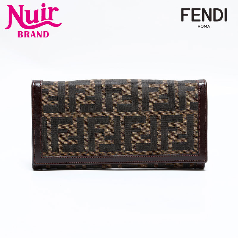 - フェンディ FENDI 三つ折り財布 ズッカ キャンバス 長財布 ブラウン