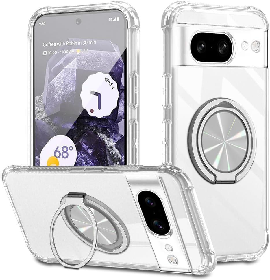 - Google Pixel 8 ケース 360°回転スタンド リング付き カバー