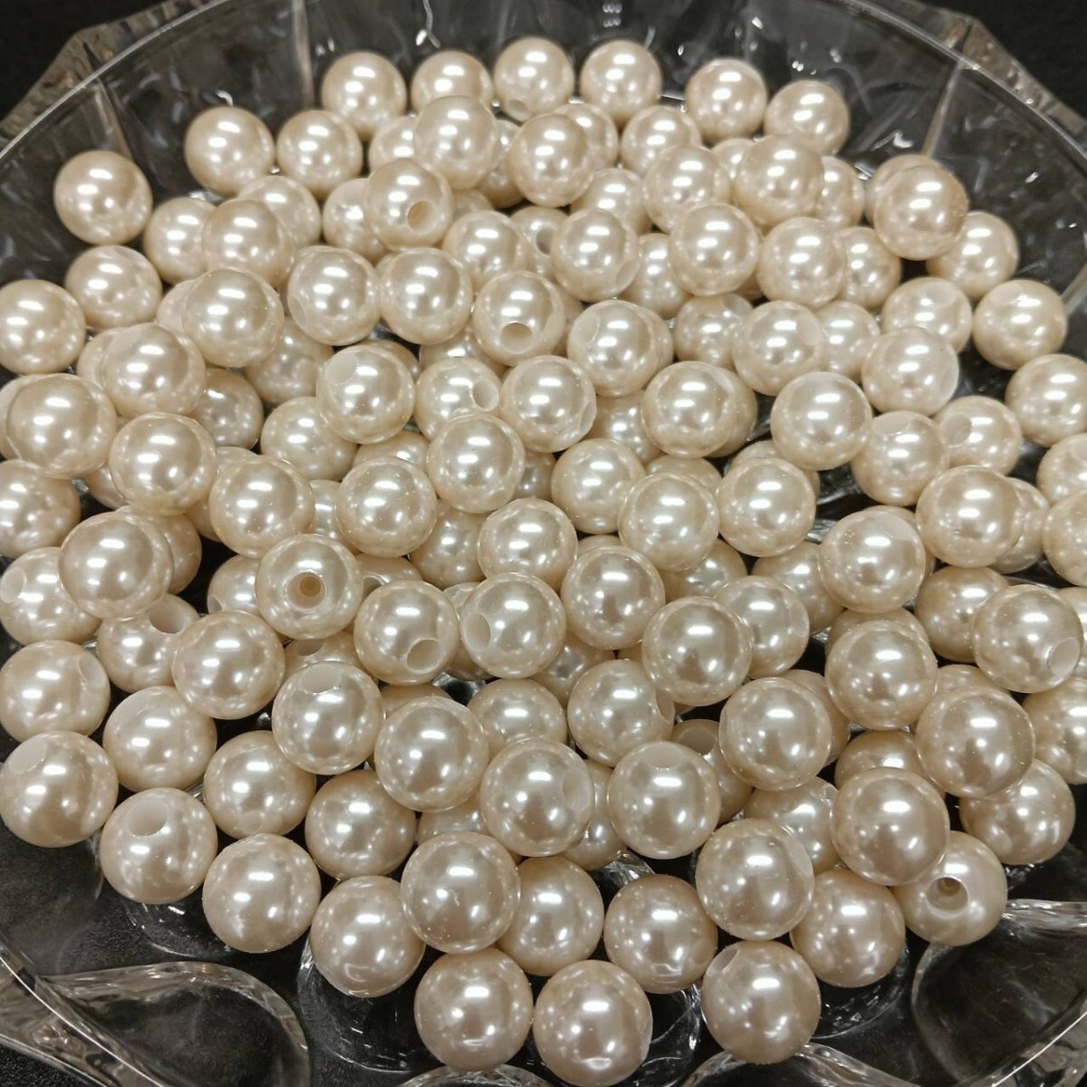 - L344☆未使用 大量 片穴 プラパール ビーズ ラウンド 約183g 11mm ベージュ系 イミテーション 大粒 ヴィンテージ アクセ ネックレス S-459