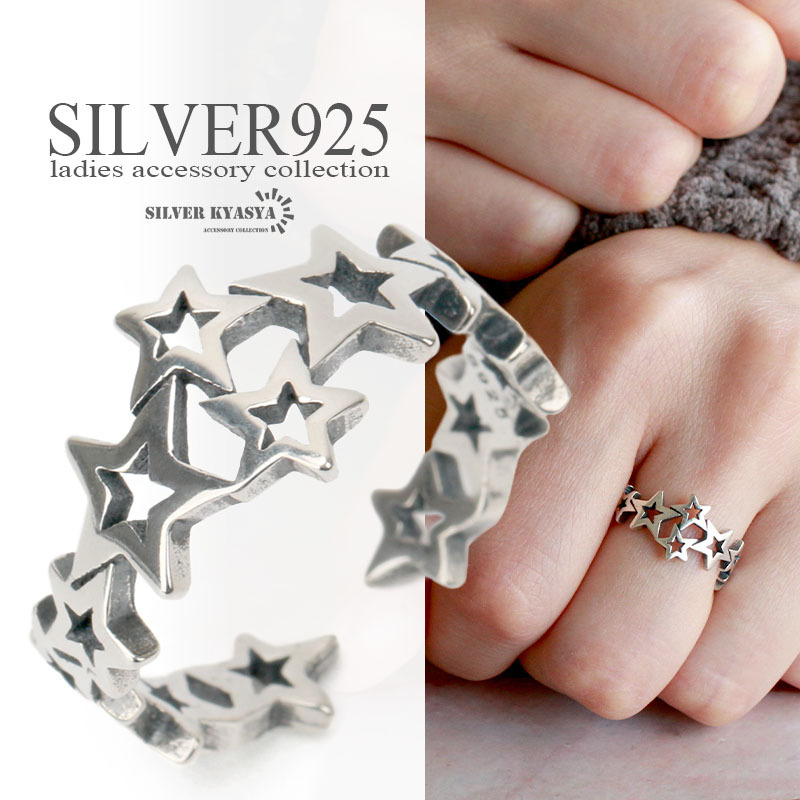 - シルバー925 スター リング 指輪 流れ星 シューティングスター フリーサイズ 金属アレルギー 銀