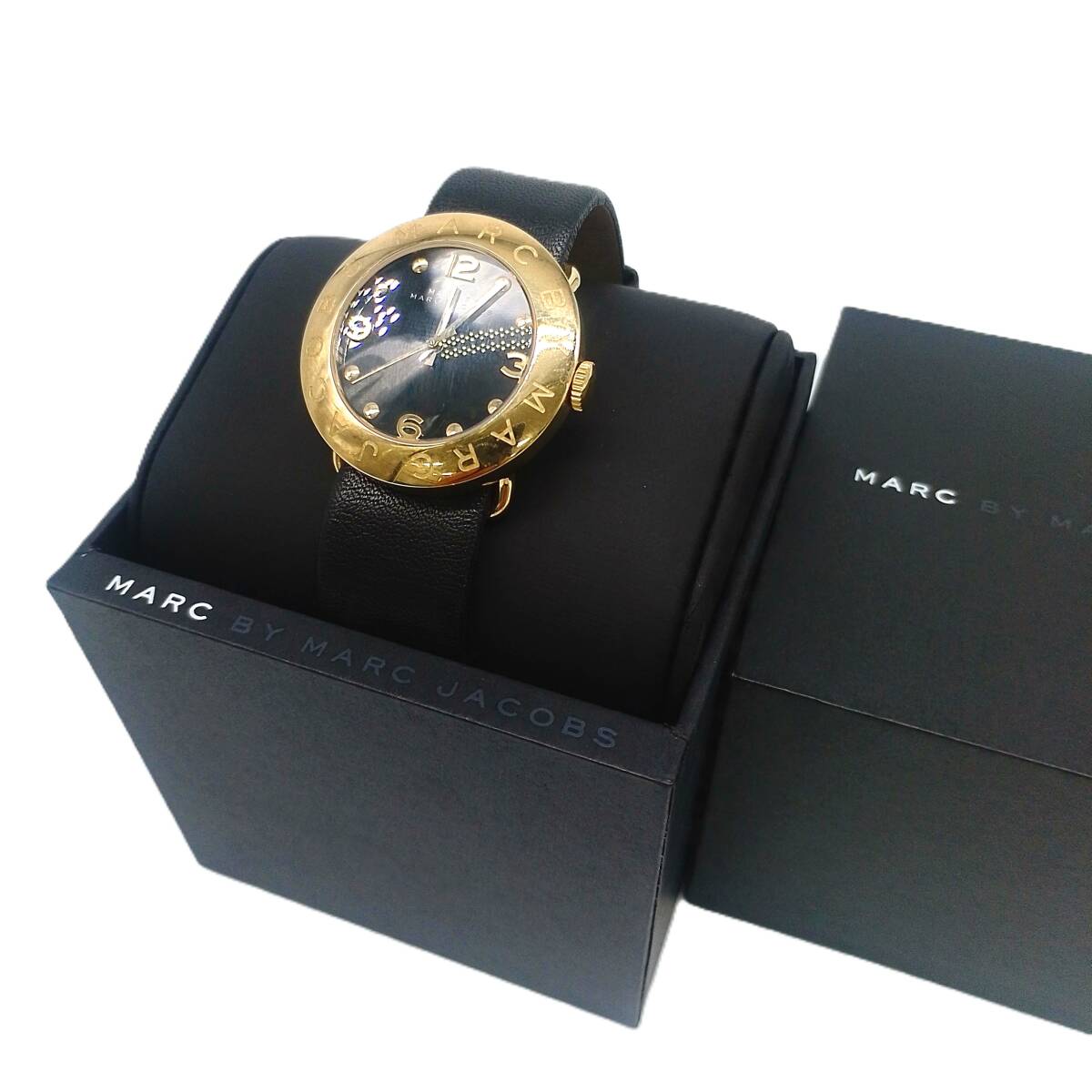 - マークバイマークジェイコブス レディース 腕時計 黒×ゴールドGP 純正革ベルト MBM1154 箱付き