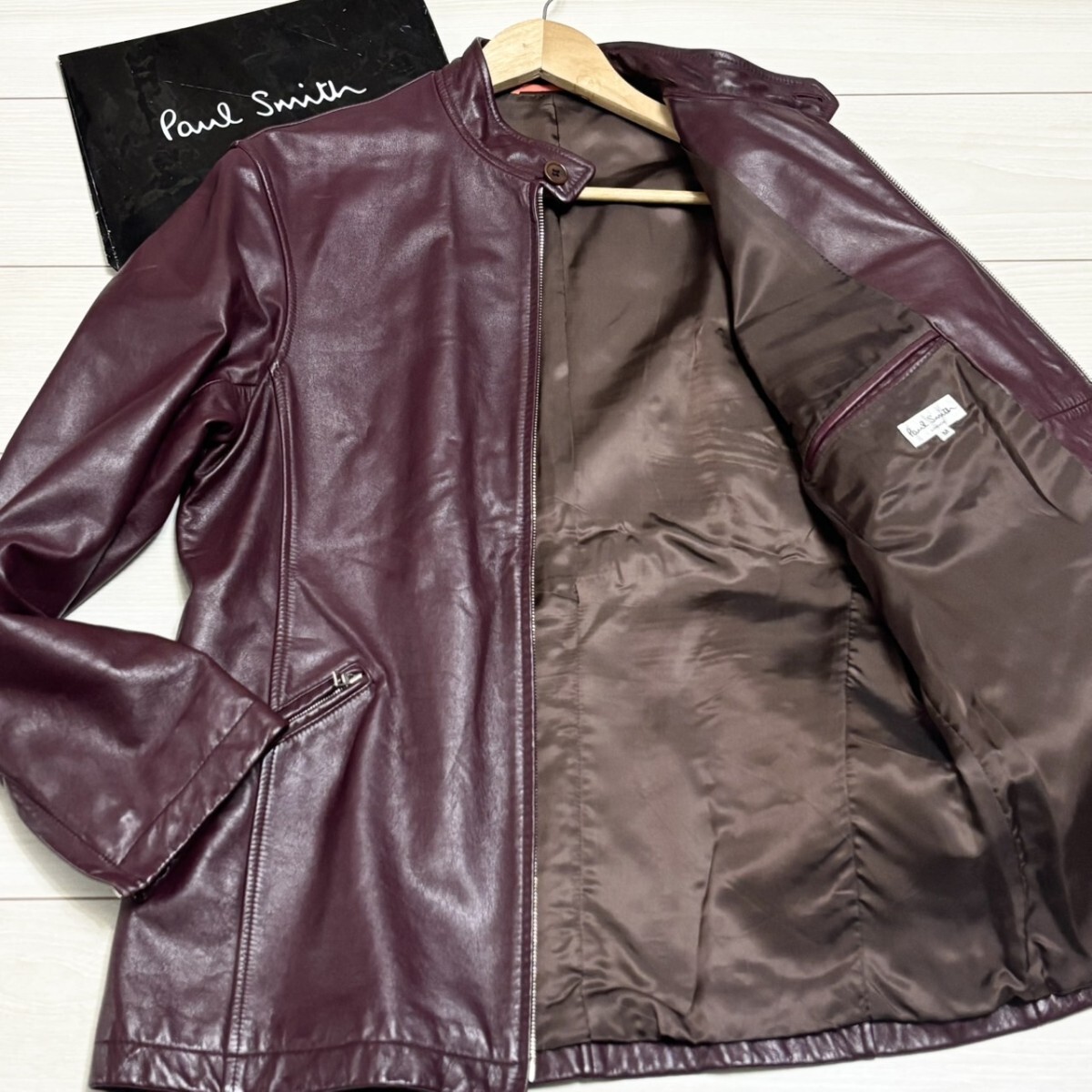 > 極美品/Mサイズ●Paul Smith LONDON ポールスミス シングルライダース レザー ジャケット 牛革 ボルドー ブラウン メンズ アウター