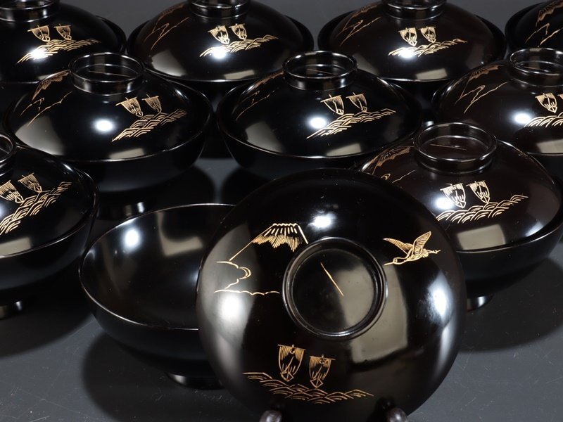 ■【夢讃岐】木製 見返し沈金・吸物椀 10客揃(蓋10枚)Φ120 H55 wa956 ■ 商品詳細 御覧頂き、ありがとうございます。 【夢讃岐】木製 見返し沈金・吸物椀 10客揃(蓋10枚)Φ120 H55 wa956 ○商品状態○経年あります。良い状態です。椀10客揃(蓋10枚)。 状態に関しては,充分に画像で確認の上、クレームの無い様に御入札下さい。 ○サイズ○ Φ--mm/高さ--mm ぐらい画像参照ください。 ○御一読下さい○2025年で、昭和100年です。私共の扱う品は、大半の物が半世紀から一世紀以前の品です。 新品と表記しない限り,確実に経年有りますので, 新品とは違い、擦れアタリ等は有るとお考え下さい。 また細かい見落とし等も時代古物とお考えの上御容赦下さい。 気になる箇所は、画像にもアップ致しますので、ご了承の上御入札下さい。 記載・画像掲載されてない,見落としに関しては、常識の範囲で誠意対応致します。 他にも漆器をメインに出品しておりますので、ぜひ御覧下さい 。