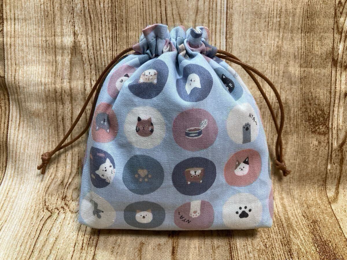 - 巾着袋 巾着 ねこ くすみカラー ハンドメイド ミニ巾着 マチあり