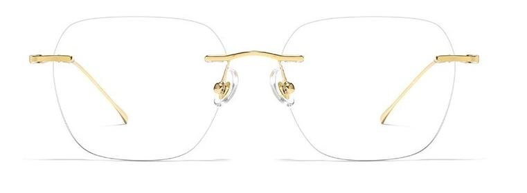 - 【新品】超軽量メガネ! 金属 チタン 眼鏡フレーム ふち無し 度数なし ファッション 男女兼用ゴールド ydyj115