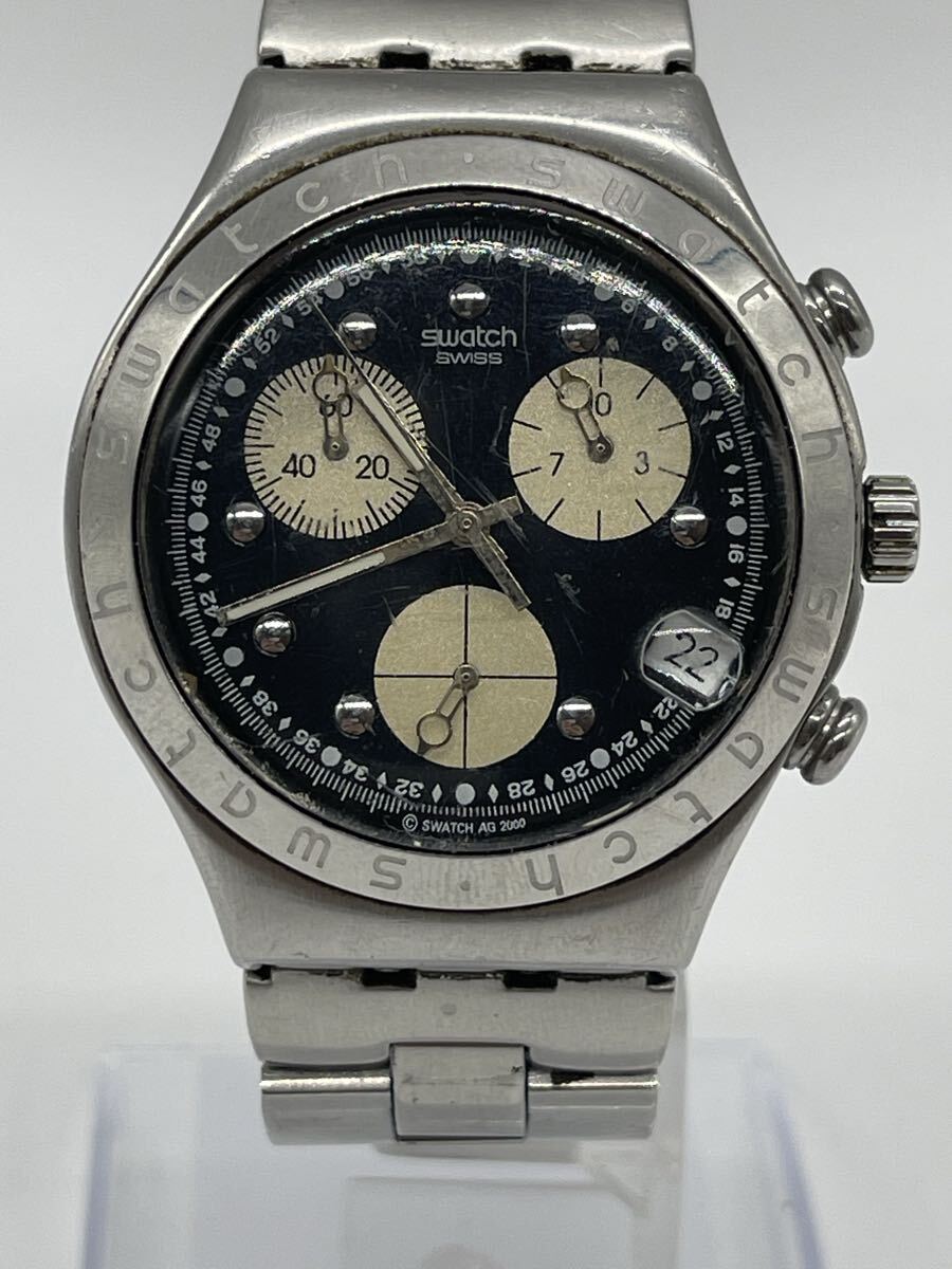 - 【1円スタート】Swatch Irony Chronograph スウォッチ アイロニー クロノグラフ デイト付き メンズ腕時計 未稼働
