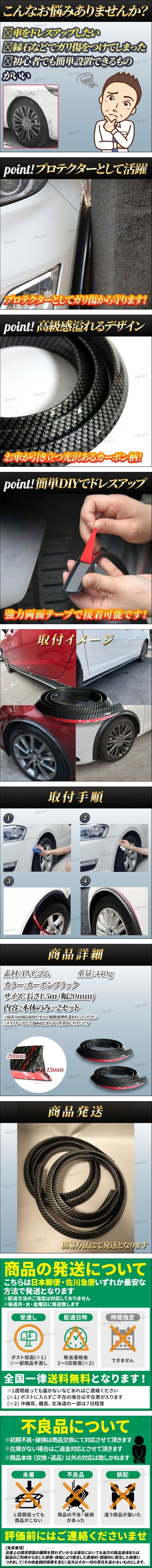 > フェンダーアーチモール フェンダー リップモール 汎用 アーチモール オーバーフェンダー カーボン調 黒 ドレスアップ ゴム 1.5m 2本 ②