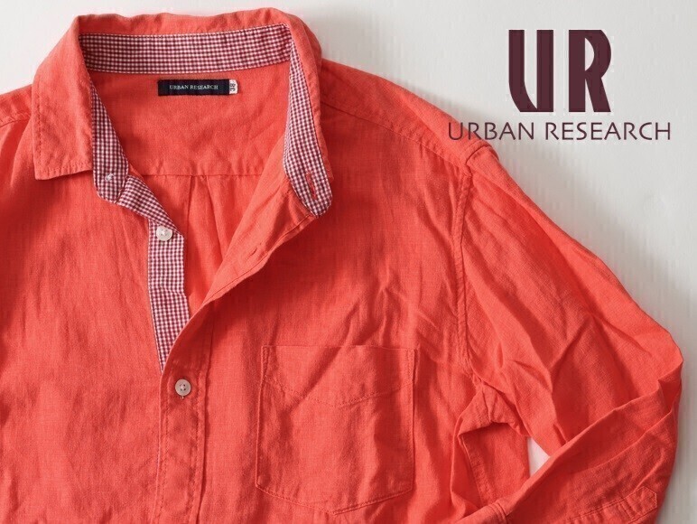 - ★中古品★URBAN RESEARCH アーバンリサーチ★3D錨ロゴ七分丈麻シャツ★38【WMF-973402S】レッドオレンジ赤橙【本物保証】汚有