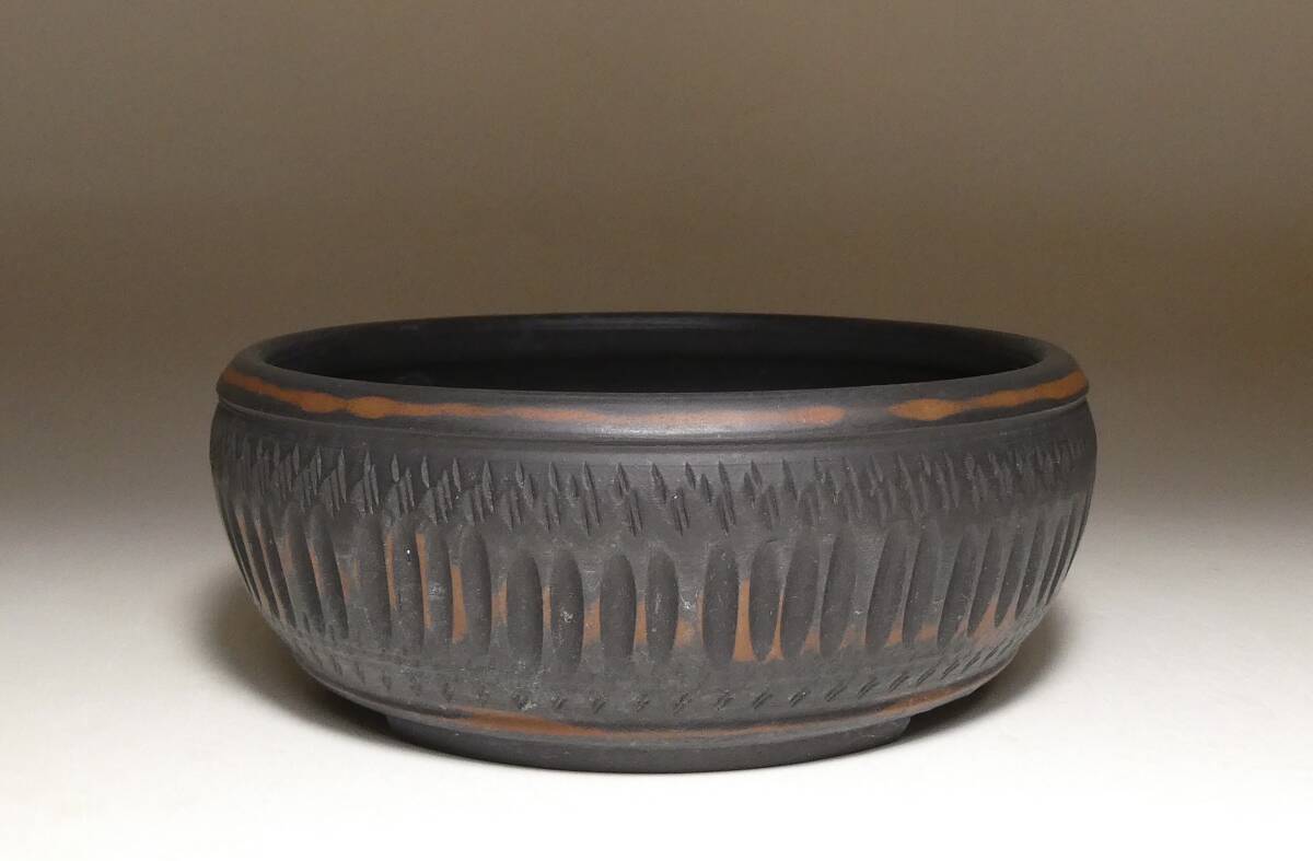 - ▼美芸(平田美芸)黒泥模様彫丸鉢 9.5×3.6cm