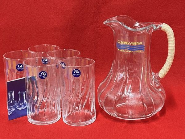 - 【M909】新品 昭和レトロ ADERIA/アデリア クールセット パゴダ タンブラー ピッチャー 硝子 ガラスコップ 水差 b