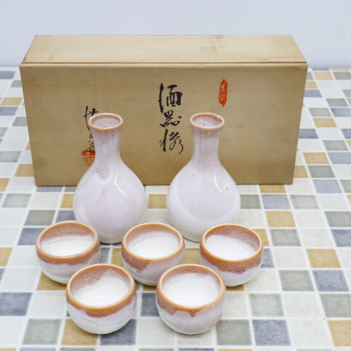 ◆乳白酒器 陶磁器 |酒器セット|美濃焼 |日本酒 お酒 徳利2個、お猪口5個■O4142の出品です!
