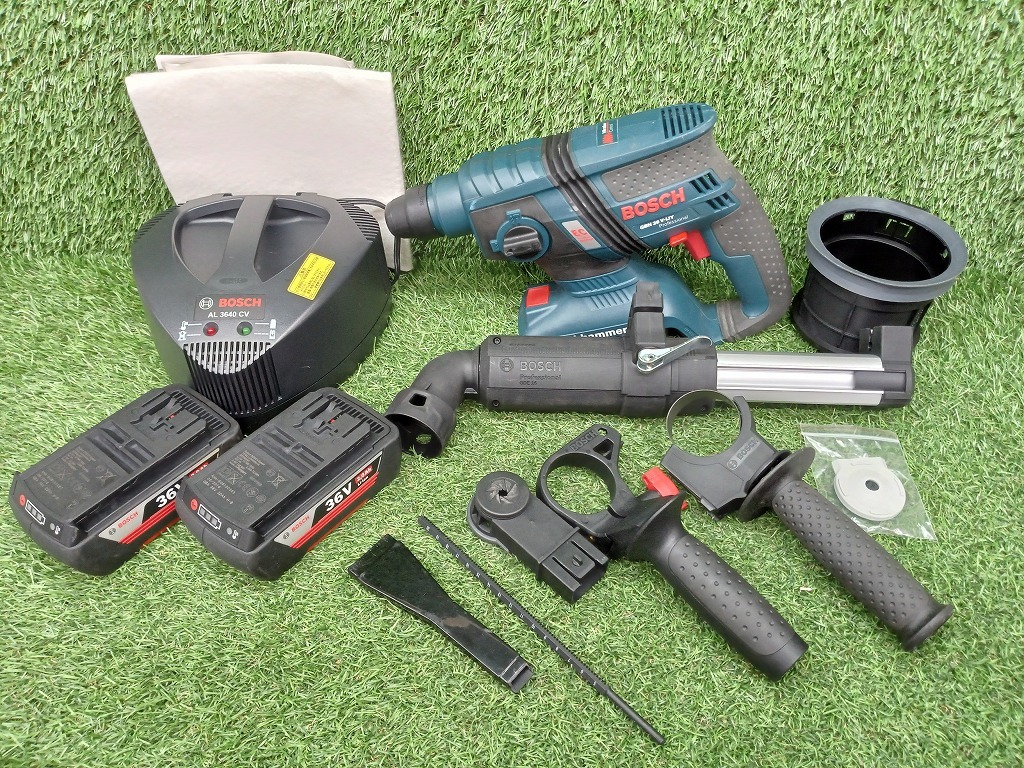 > 中古品 BOSCH ボッシュ 36V バッテリーハンマードリル バッテリー2個 充電器 ケース付GBH-36V-ECY