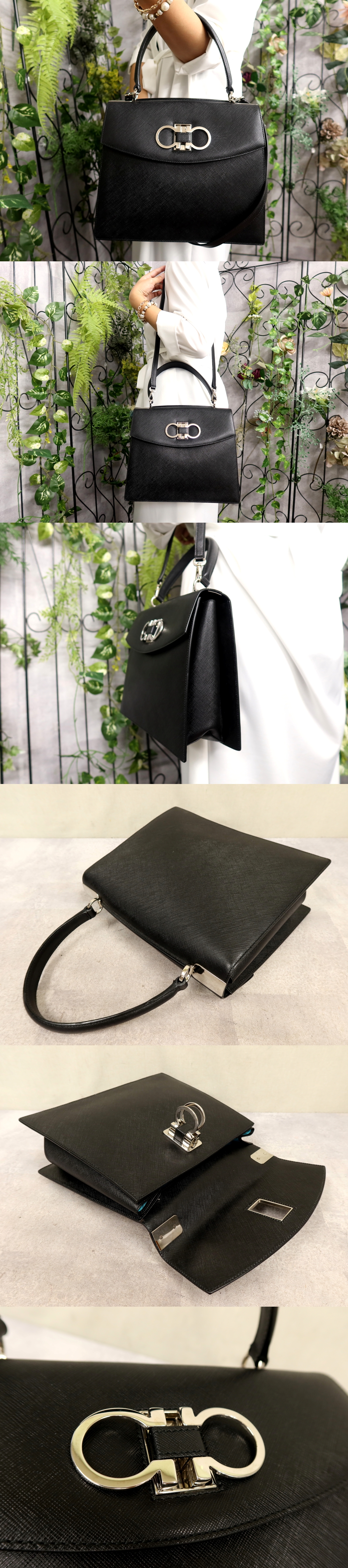 > ●超美品●Salvatore Ferragamo フェラガモ●ダブルガンチーニ●サフィアーノ レザー 本革●2way ハンド バッグ●黒●SV金具●Js60666