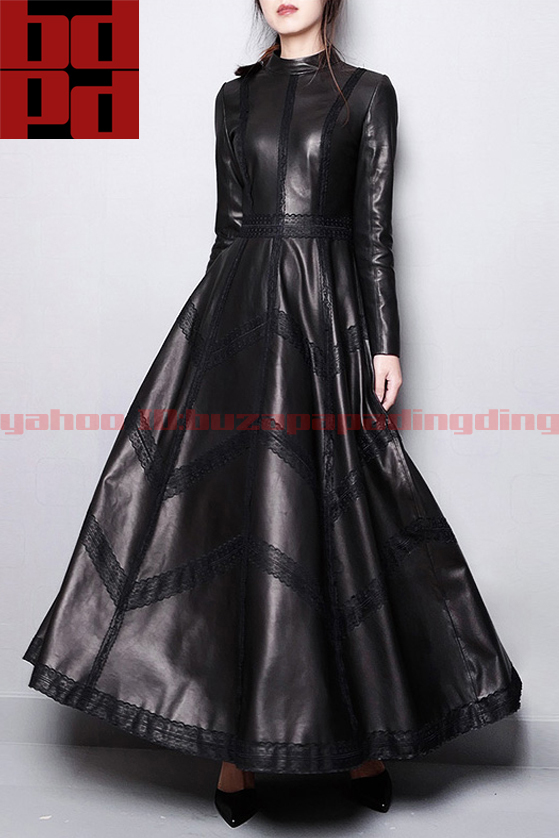 - 輸入ラムレザー使用のロングワンピース。レースの大スカートとライダーステイストが魅力のフォーマルドレス。秋冬のパーティーに。Z98