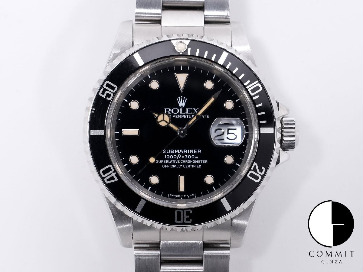 使用に伴うスレキズがございますが、ケースがしっかりとした印象の良い個体でございます。夜光はオールトリチウムとなっており、針・インデックス・ルミナスポイントが強めに焼けたパンプキン個体となっております。秒針は先端ドットとなっており、この年代は文字盤が劣化している個体が多く見られる中、非常に綺麗なコンディションをキープしております。保証書も付属したセミヴィンテージ特有の良い雰囲気が感じられる「Ref.16610」となっておりますので、お探しの方には非常にオススメな一本でございます。