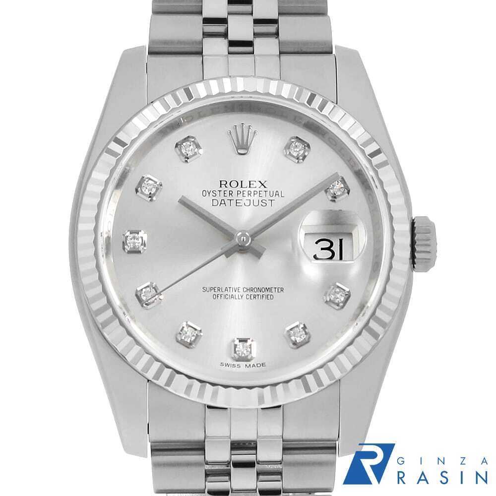 - ロレックス デイトジャスト 10Pダイヤ 116234G シルバー 5列 ジュビリーブレス G番 中古 メンズ 腕時計