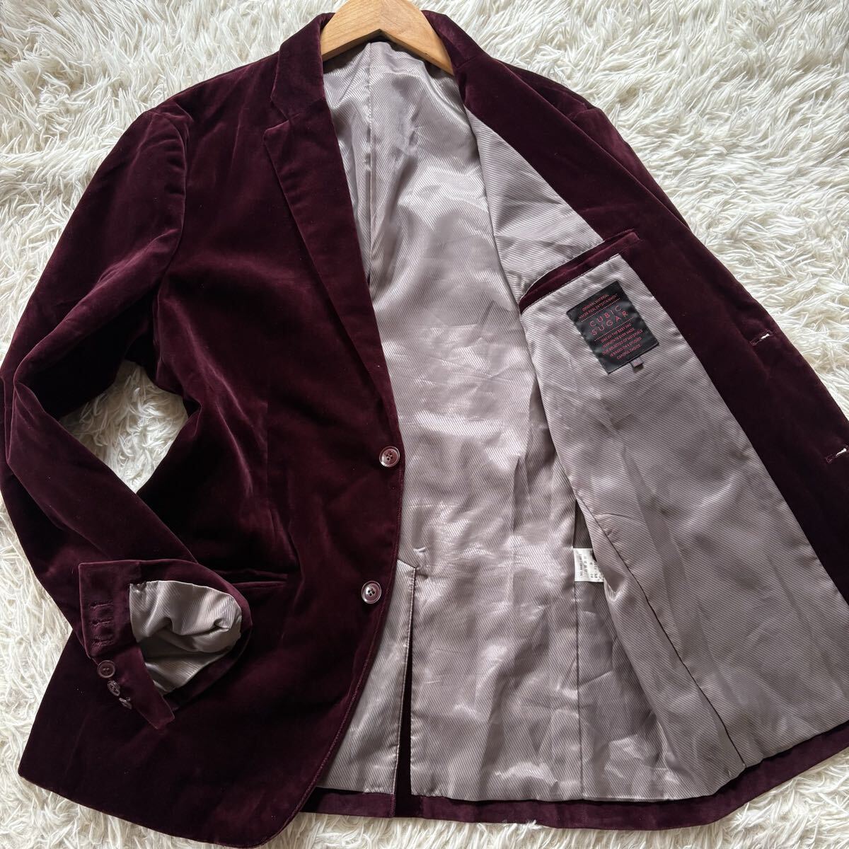 - ◎美品/希少LLサイズ◎CUBIC SUGAR ベロア テーラードジャケット ベルベット ワインレッド ボルドー 秋冬 メンズ ブレザー ◎高級感◎ XL