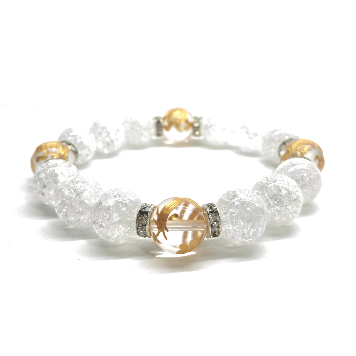- 四神獣金彫水晶×クラック水晶 12mm パワーストーン ブレスレット天然石 青龍 白虎 玄武 朱雀 運気上昇 お守り 金運 四神獸 四神相応 S